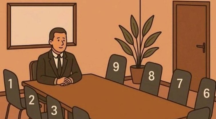 Įsivaizduokite situaciją: jūs įžengiate į posėdžių kambarį, kuriame jau sėdi vienas žmogus. Aplinkui yra devynios laisvos kėdės. Klausimas paprastas – ant kurios kėdės atsisėstumėte?