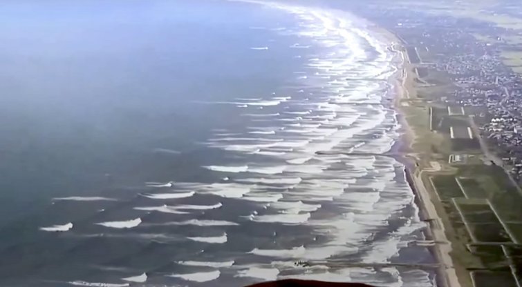 Japonijos Ramiojo vandenyno pakrantėje pastebėta dešimtys bangų.