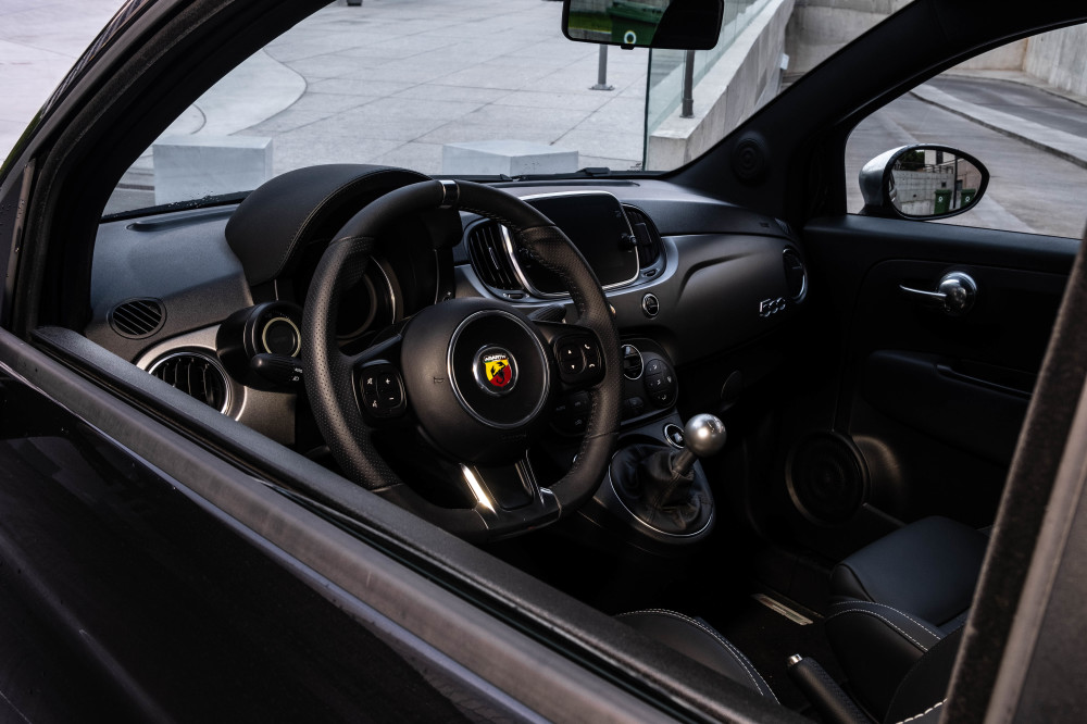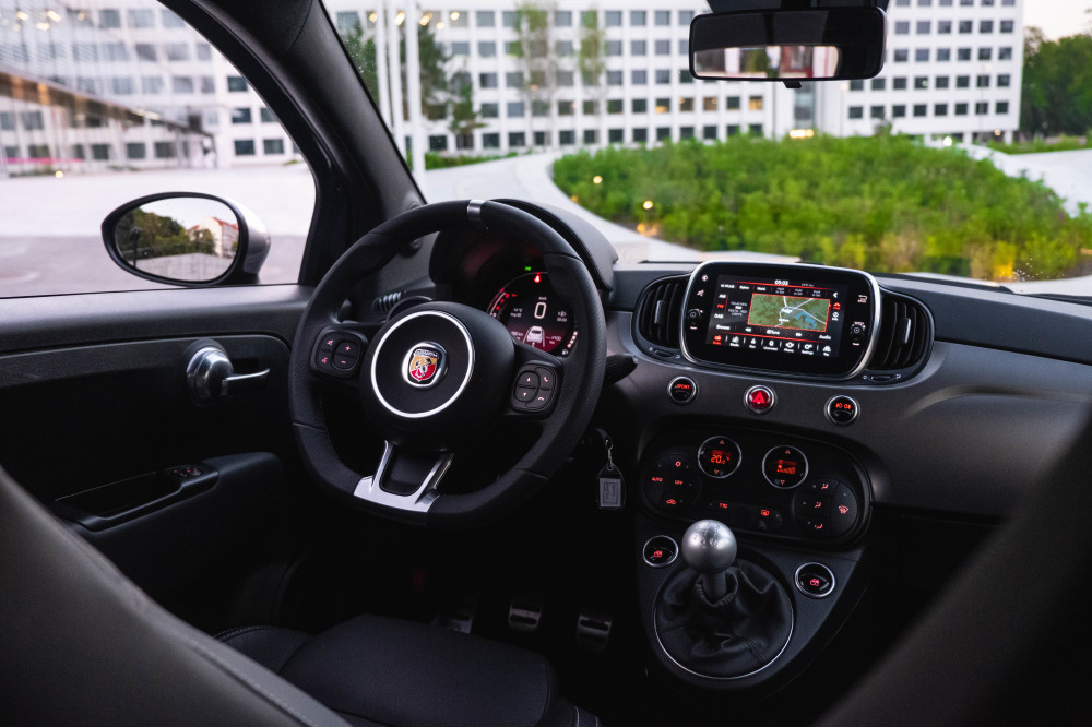 Vis dėlto, šios smulkmenos nesugeba užgožti stilingo ir stebėtinai elementaraus interjero. Kad ir kur pasisuksite, ten atrasite žaismingas detales. Pavyzdžiui, turbinos slėgio daviklis, iš aliuminio pagaminta pavarų perjungimo rankenėlė, raudoname debesėlyje plaukiojantis užrašas „Sport“ arba kiekvieną kartą užvedus variklį multimedijos ekrane atsidarančios garažo durys, pro kurias išrieda jūsų „Abarth“ – mažos, bet malonios smulkmenos, kurios visuomet pabrėžia, jog vairuojate ne pilką dyzelį ir tikrai neeilinę dėžutę. Ypač, jeigu turėsite noro automobilį susikonfigūruoti pagal savo poreikius, nes „Abarth“ siūlomų aksesuarų skaičius – milžiniškas.