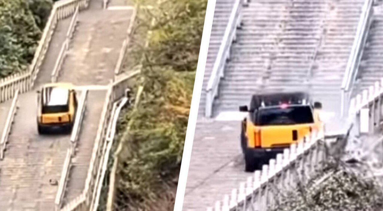 Kaip matyti paviešintuose vaizdo įrašuose, „Fulwin X3L“ įveikė maždaug tris ketvirčius kelio į viršų. Tačiau tuomet pasigirdo garsus traškesys. Automobilis staiga prarado galią, ėmė slysti atgal, rėžėsi į šoninius turėklus ir apgadino garsiąją Kinijos lankytiną vietą.