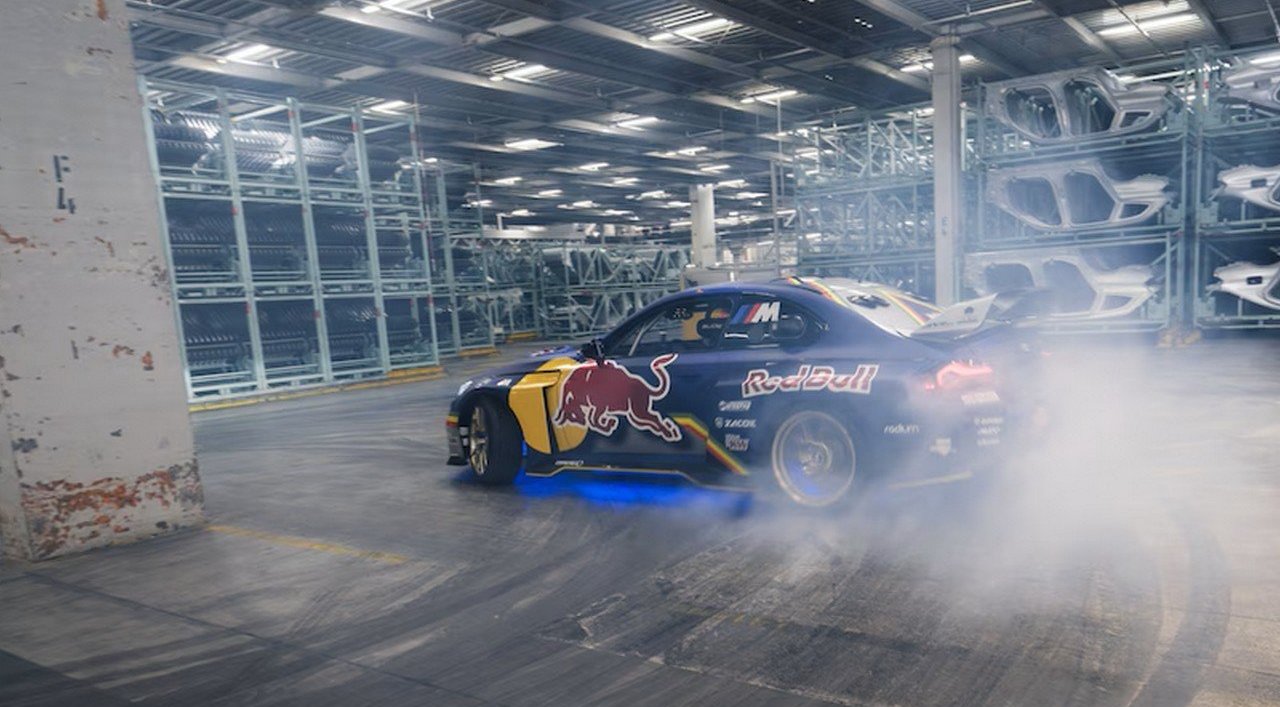 Tarp plikų kėbulų ruošinių ir automatizuotų robotų jis atliko virtinę „Gymkhana“ stiliaus triukų. Nors kasdienis darbas gamybos ceche dažnai yra monotoniškas, ši rutina buvo nutraukta, kai garsus drifteris ne tik atsiėmė savo naująjį sportinį įrankį, bet ir čia pat jį išbandė maksimalios apkrovos sąlygomis.