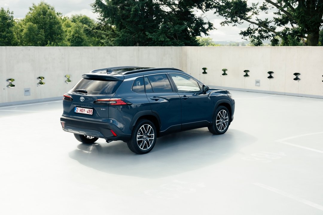 Pokyčių yra ir galinėje dalyje. Atnaujinti galiniai žibintai dabar turi nedidelius aerodinaminius pelekus, kurie, gamintojo teigimu, prisideda prie automobilio stabilumo ir geresnio oro srautų valdymo. Prie kitų vizualių pokyčių priskiriamas ir įspaustas „Corolla Cross“ logotipas ant bagažinės dangčio bei naujo dizaino 18 colių lengvojo lydinio ratlankiai.