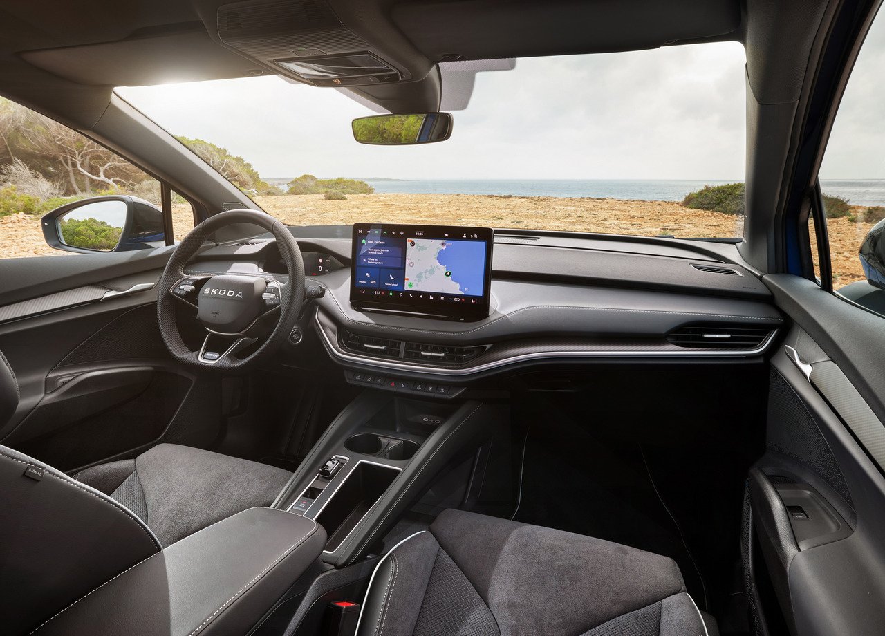 Jau standartinėje įrangoje montuojamas 13 colių įstrižainės centrinis informacijos ir pramogų sistemos ekranas. Elektromobilyje įdiegta naujoji vartotojo sąsaja pasižymi aiškiu, intuityviu ryšiu su vairuotoju ir nauju grafiniu dizainu. Pirmą kartą ši sistema buvo pristatyta dabartiniame „Enyaq“ bei naujosios kartos „Superb“ ir „Kodiaq“ modeliuose.