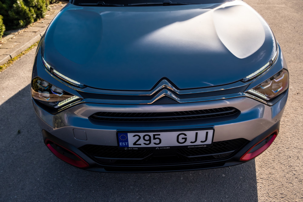 Pavyzdžiui? Be sutrumpinto ir nuožulnaus stogo, pažvelkite į priekinę dalį, kur rasite penkerių metų senumo „Cxperience" koncepcijos įkvėptą raukšlėtą nosį. Po logotipu su chromuotu apvadu eina siauri dienos žibintai, po kuriais pūpso didžiulės lašo formos skylės, kuriose buvo įgrūsti žibintai su LED technologija. Tokį sprendimą „Citroën“ panaudojo ne pirmą kartą, o ir panašu, jog tai tapo visuotine automobilių dizaino tendencija, nes panašius sprendimus galima išvysti ir kai kuriuose korėjietiškuose modeliuose.