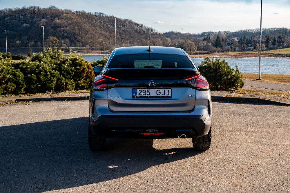 Keliaujame toliau, o tiksliau – žvelgiame į automobilio šoną, kur išvysite firmines šonines pagalvėles, tačiau, kaip pripažįsta patys prancūzai, jos yra skirtos praturtinti automobilio stilių, o ne apsaugai nuo ne savo dureles mėgstančių daužyti individų. Ir galiausiai – keista galinė dalis, kurios pailgą galinį langą į dvi dalis padalija juodas spoileris. Nors šį sprendimą galime laikyti originaliu, tačiau dėl šio mandro dizaino elemento „Citroën C4“ neturi galinio valytuvo. Taip pat dėl šio sprendimo matomumas tampa prastesnis, o bagažinės dangtis nėra pats lengviausias, tad mes labai nenustebtume, jeigu daugelis papildomos įrangos sąraše ieškotų kaip užsisakyti elektra valdomą bagažinės dangtį.