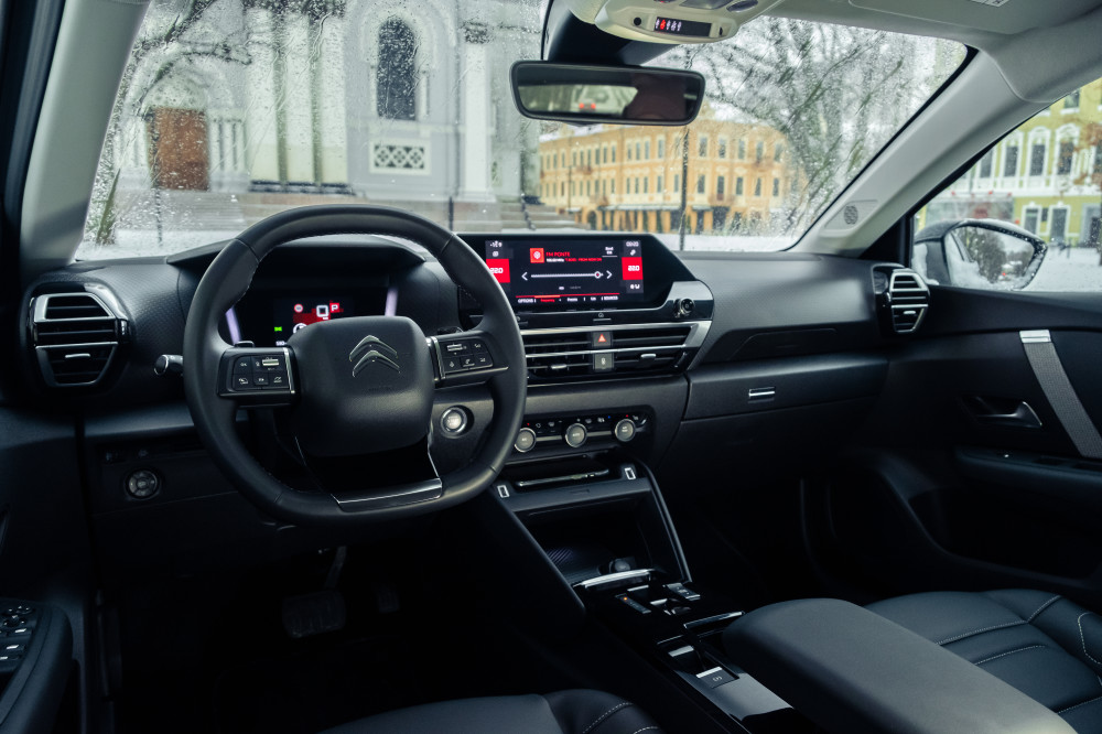 Vairuotojui skirta darbo vieta atspindi „Citroën" dizainerių plėtojamą stilių, tačiau šį kartą mes pajutome akivaizdų progresą. Pirmiausia norėtųsi pasidžiaugti, jog eksperimentų nevengiantys „Citroën“ sugrąžino prietaisų valdiklį su fiziniais mygtukais, leidžiančiais keisti oro kondicionavimo sistemos darbą, nes būtent „PSA“ koncernas buvo vienas pirmųjų, kuris pagrindines funkcijas pradėjo perkėlinėti į lietimui jautrų ekraną. Inovatyvu – be abejonės, bet ne visuomet patogu.