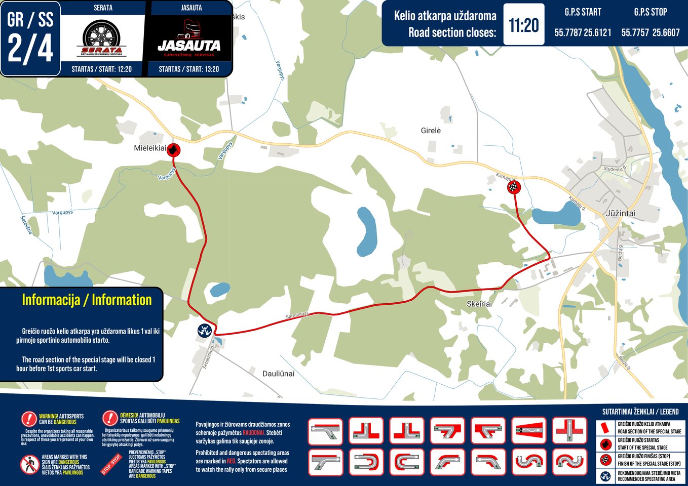 - GR/SS 2 – „Serata“ ir GR/SS 4 – „Jasauta“ (5,5 km)Ši trasa prasideda Mieleikiuose ir vingiuoja link Jūžintų, kur bus įrengta dalyvių persigrupavimo zona.