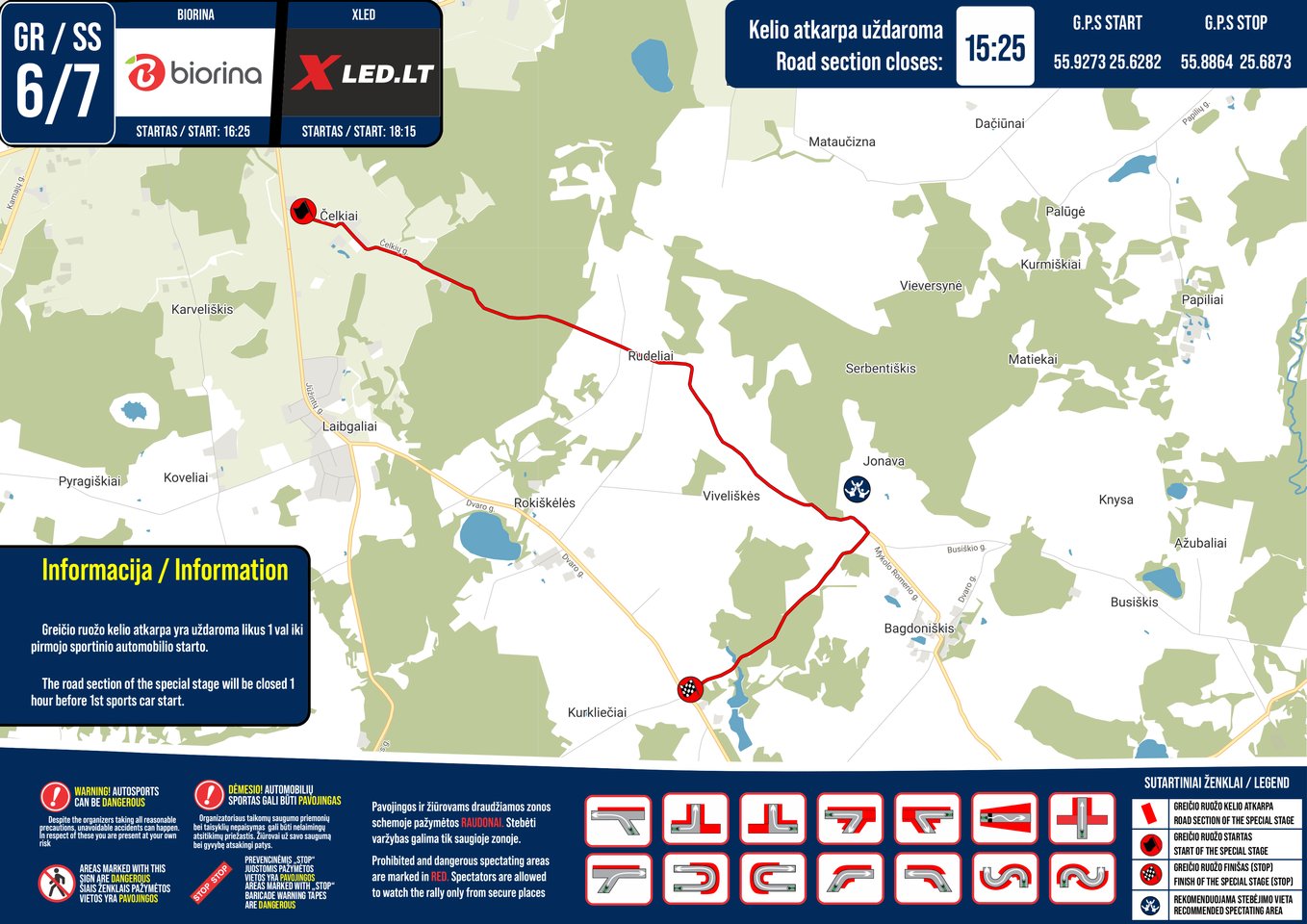 - GR/SS 6 – „Biorina“ ir GR/SS 7 – „Xled“ (8,61 km)Tai ilgiausias šio ralio ruožas, dar žinomas kaip „Bagdoniškio“ greičio ruožas.