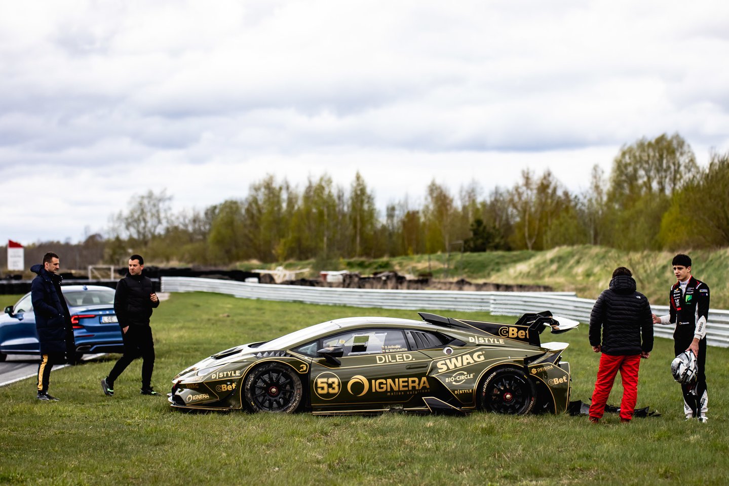 2023-iųjų metų balandžio 30 dieną, sekmadienį, buvo organizuojami pirmieji automobilio bandymai Estijoje esančioje „Porsche Ring“ trasoje. Trims vairuotojams buvo paruošta po komplektą naujų padangų, tačiau iš ryto, ramiam apšilimui, buvo nuspręsta visiems apsukti po kelis ratus su dėvėtomis padangomis. Pravažiavo Mantas Matukaitis, Danas Azikejev, trečias sėdo Kajus. Jaunas, perspektyvus ir ambicingas vaikinas pirmą kartą sėdęs prie „Lamborghini“ vairo pradėjo demonstruoti didelį tempą, tačiau tai truko vos kelis ratus. Greičiausiame trasos posūkyje, lėkdamas 220 km/val greičiu jis išlydo iš trasos ir rėžėsi į atitvarus. Automobilis buvo stipriai pažeistas.