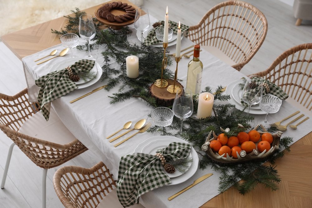 Kuriant 2025 metų šventinį stalą, svarbiausia susitelkti į kelis esminius akcentus, kurie formuoja bendrą įspūdį ir kuria jaukią atmosferą. Natūrali bazė iš lino ar medžio suteikia stalui šilumos, o žvakių šviesa pripildo erdvę jaukumo ir šventinės nuotaikos. Žaluma, deranti su šiais metais vyraujančia žalia spalva, įneša gyvybės ir natūralumo, todėl stalas atrodo harmoningai ir moderniai.