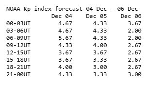 Jungtinių Amerikos Valstijų Nacionalinės vandenynų ir atmosferos tyrimų administracijos (NOAA) artimiausių trijų dienų prognozėje matyti, kad šiandien ryte aktyvumas daugiausiai pasieks 5,67 balus.