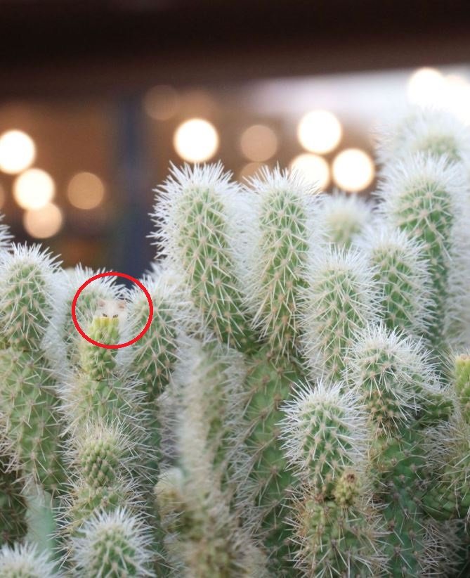 Nors fono spalva ir šimtai, jei ne tūkstančiai kaktusų dyglių nuotraukoje gali jus suklaidinti, pažvelkite labai atidžiai ir nepasiduokite, tęskite paiešką – tikrai pavyks rasti nedidelę katytę.