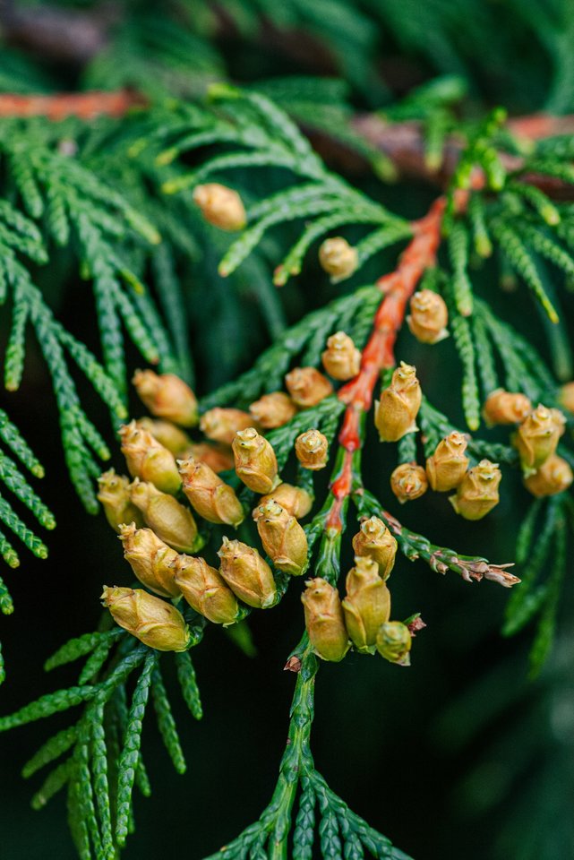V. Marozienė pataria neapsirikti – kartais susidaro įspūdis, kad tuja serga, tačiau ji paprasčiausiai sukrauna daugybę smulkių kankorėžiukų, panašių į miniatiūrinius tulpių žiedus.