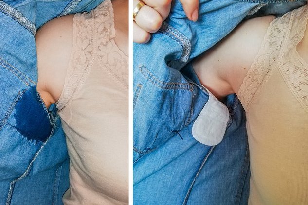 Norėdami išvengti prakaito dėmių ant marškinėlių, įdėkite įklotus į marškinėlių vidinę pažastų dalį. Kadangi įklotai yra pakankamai ploni, niekas jų nepastebės. Įklotai absorbuoja bet kokią drėgmę, kuri neleidžia baisioms gelsvoms dėmėms atsirasti.