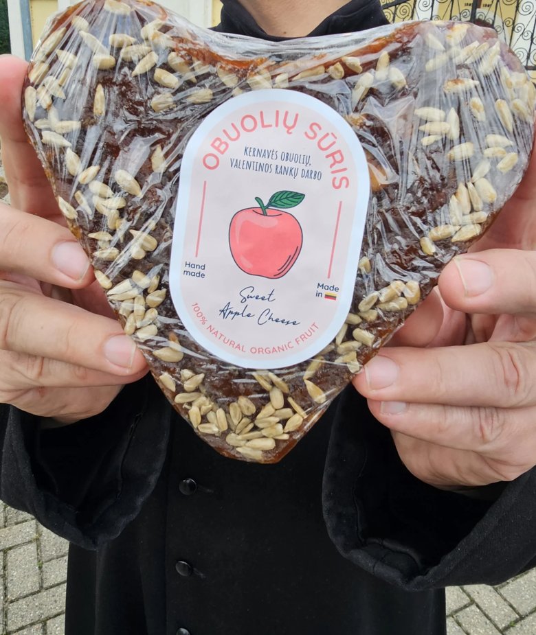 Savo rankomis gamintą obuolių sūrį M. Talučiui perdavė Kernavėje gyvenanti Valentina. Sūriais prekiaujančią moterį sutiko savaitgalį į pažintinę kelionę šiame miestelyje leidęsi AlytusPlius.lt žurnalistai.