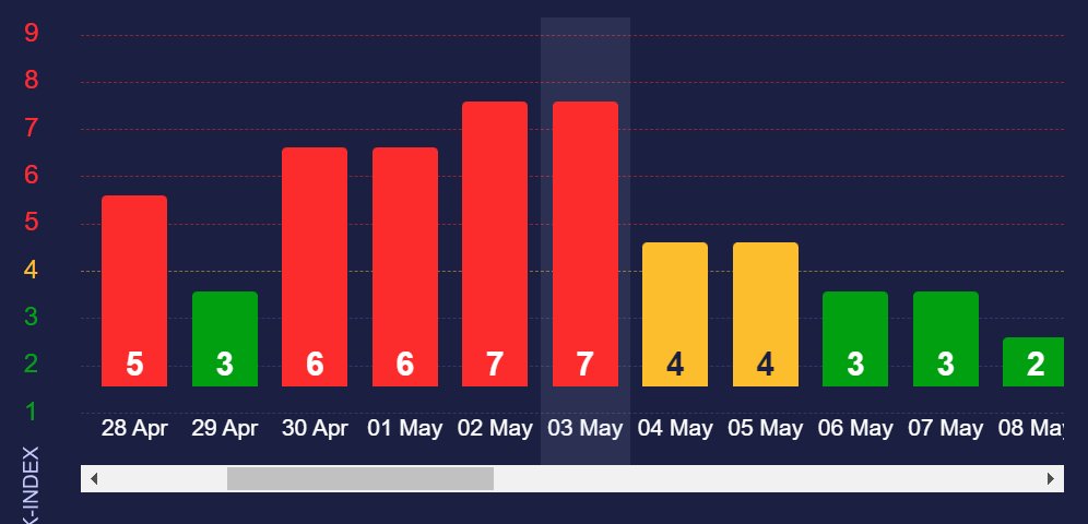 Rytoj, gegužės 4 dieną, magnetinės audros nebesieks tokių aukštumų, nusileis iki 4 balų. Nors tai taip pat nėra itin sveikatai palankūs balai, tačiau jie nebėra ir tokie pavojingi.