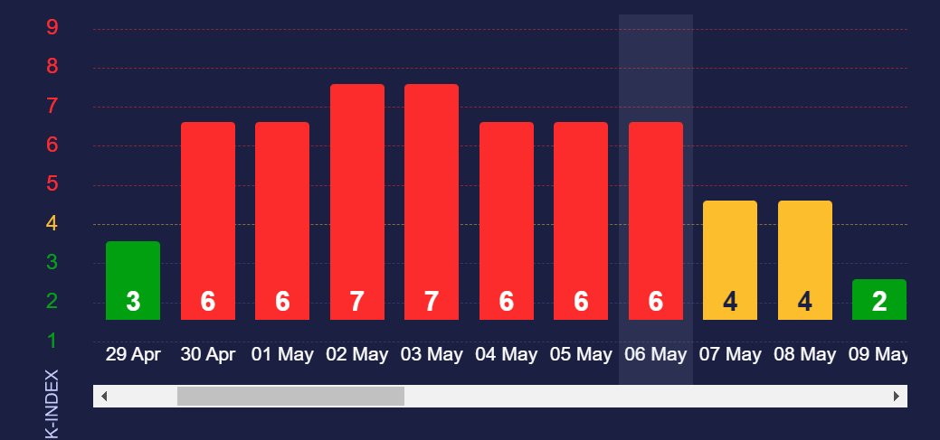 Kaip praneša meteoagent.com, šiandien, gegužės 6 dieną, magnetinio lauko aktyvumas sieks šešis balus. Primename, kad magnetinių audrų galingumas vertinamas devynių balų skalėje, tad kuo arčiau devynių balų priartėjama, tuo didesnė tikimybė, kad magnetinių audrų poveikį pajus ir sveiki žmonės.