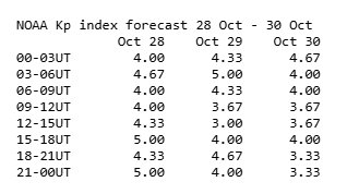 Jungtinių Amerikos Valstijų Nacionalinės vandenynų ir atmosferos tyrimų administracijos (NOAA) artimiausių trijų dienų prognozėje nurodoma, kad šiandien visą dieną aktyvumas svyruos nuo 4 iki 5 balų.