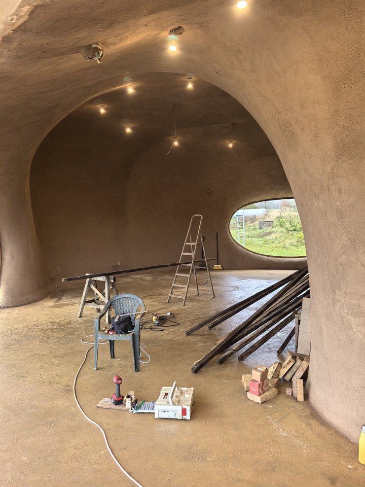 Ovaliuose namuose padarytas medinis karkasas, išlietas plokštuminis pamatas, o viskas sutvirtinta stiklo pluošto armatūra. Namo betono storis siekia apie 4 centimetrus.