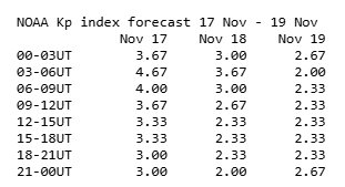 Jungtinių Amerikos Valstijų Nacionalinės vandenynų ir atmosferos tyrimų administracijos (NOAA) artimiausių trijų dienų prognozėje matyti, kad šiandien aktyvumas priartės prie 5 balų.