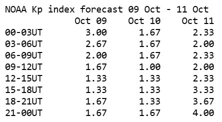 Poryt, spalio 11 dieną, geomagnetinio lauko aktyvumas šoktelės nuo 2 iki 4 balų, tačiau magnetinė audra taip pat nėra numatoma.