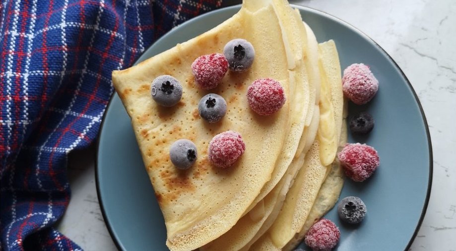 Porcijos 4. Užtruksite apie 30 min. Reikės: 300 ml gazuoto mineralinio vandens; 200 ml pieno; 4 kiaušiniai; 3 v. š. cukraus; 16 v. š. miltų; 1 a. š. vanilinio cukraus; 4 v. š. aliejaus.