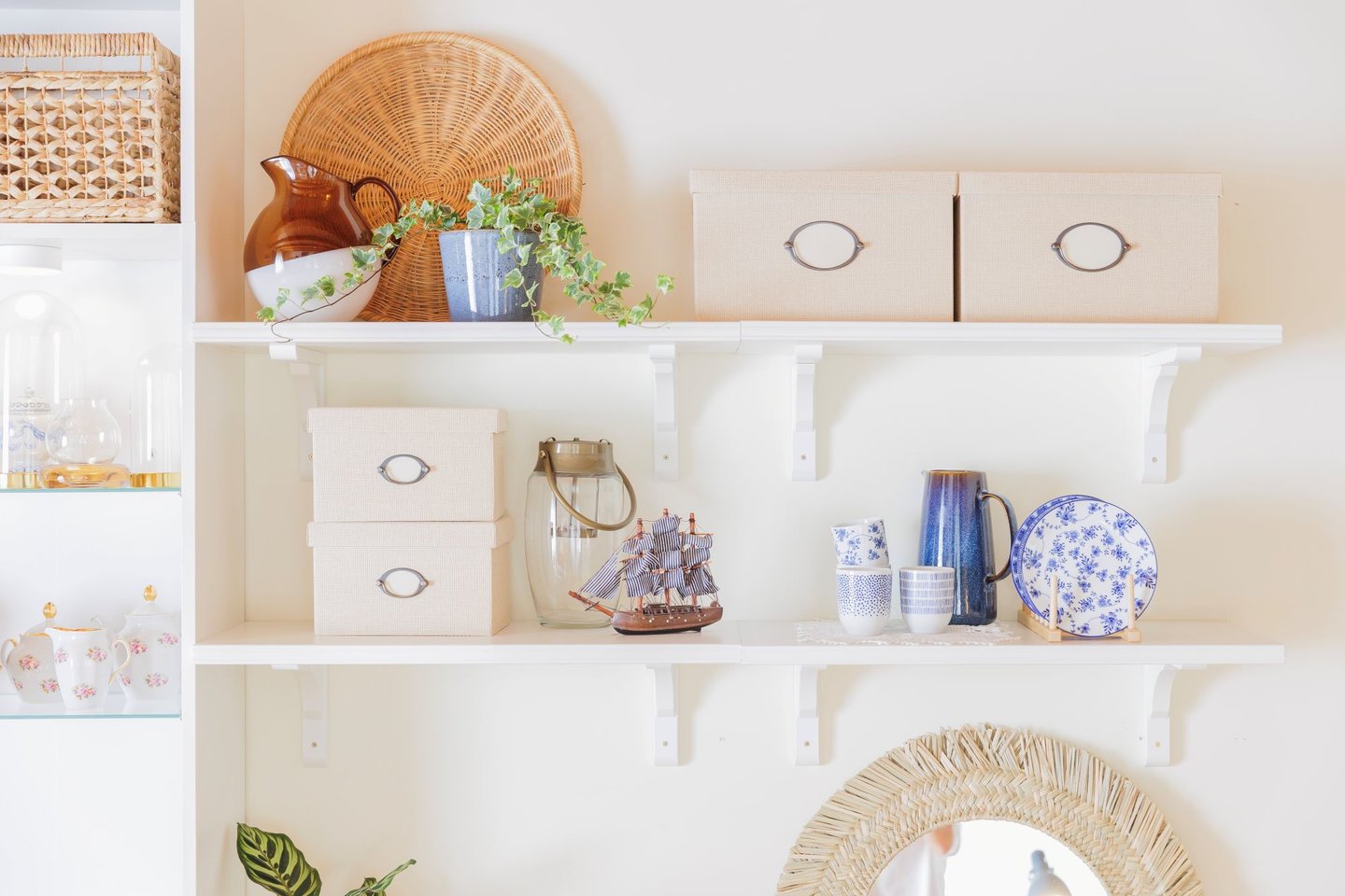 - Išnaudokite tuščias sienas. Tvirtos ir funkcionalios pastatomos lentynos yra itin universalus sprendimas, nes puikiai tinka knygoms, interjero dekoracijoms ar indams tvarkingai sudėti. Be to, jos atlaisvina grindis, sukurdamos daugiau vietos žmonėms, o ne daiktams. Na o laikui bėgant, galima pakeisti, pavyzdžiui, tik lentynos duris, įsigyti daugiau lentynų ar spintos paaukštinimų.