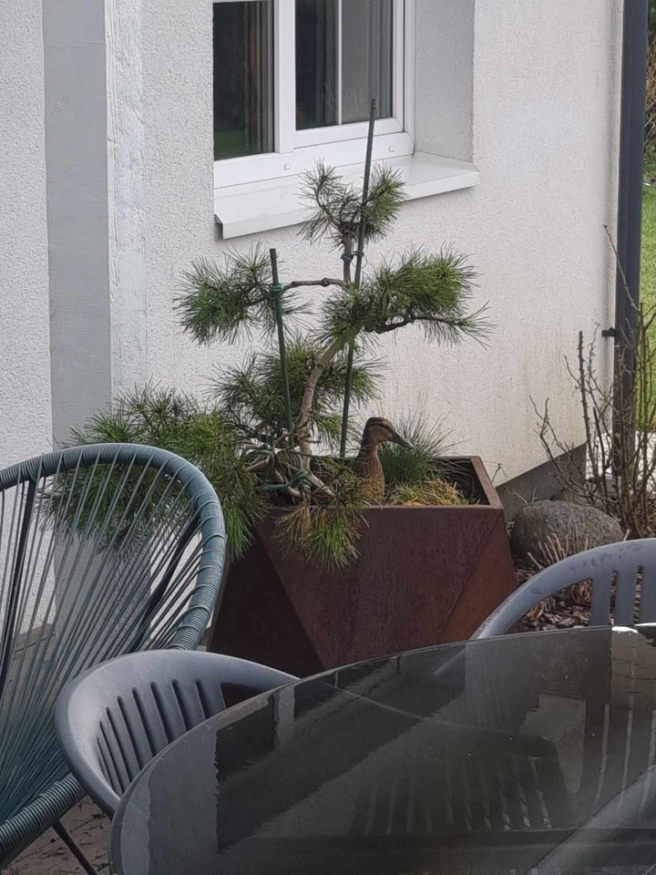 Galbūt žmonės kurį laiką nėjo prie šio vazono, arba ją maitino, nes jei antis matytų pastovų judėjimą, ko gero nesirinktų tokios vietos.