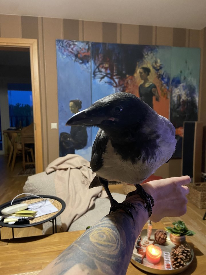 „Vieną kartą netgi vyrą užkėliau ant kaimynų stogo, nes kai Endyvoras mokėsi skraidyti, tai jam skristi sekėsi puikiai, bet nutūpti būdavo sunku. Tąkart jis nusileido ant kaimynų stogo ir pratupėjo ten visą dieną. Galiausiai, ėmiau prašyti vyro, kad nukeltų varniuką, juk jam baisu. Tad vyras užlipo ant stogo ir padėjo išgelbėti paukštelį“, – šmaikštavo Vija.