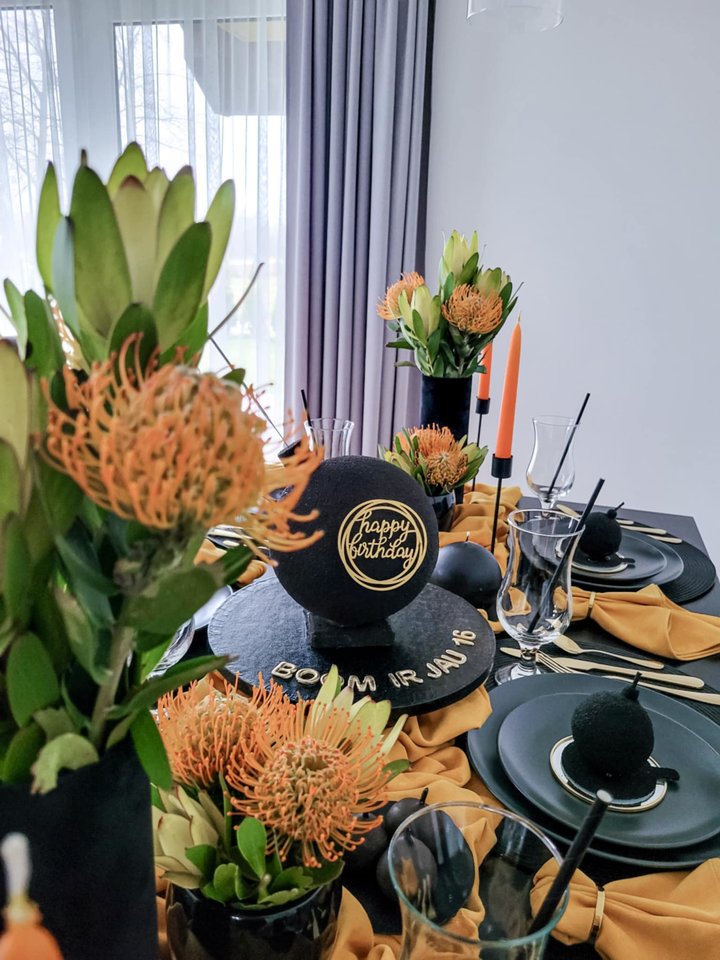 Suaugusiųjų gimtadieniai – dar įdomesni, nes temų galima sugalvoti netikėčiausių. Vyro gimtadienis, švenčiamas per Pusiaužiemį, buvo paremtas šia idėja, o vyresniajam sūnui 16-ojo gimtadienio tema „Bum! Ir 16!“ atspindėjo staigią brandos pradžią.