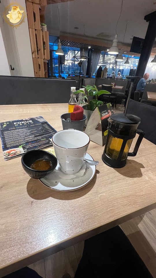 Kadangi aš atvykau pirmiau nei mano draugai, tai leidau sau gurkšnodamas arbatą ne tik kad kelis kartus peržvelgti šios įstaigos meniu, bet ir žinodamas draugų skonius leisti sau padaryti patiekalų užsakymą.