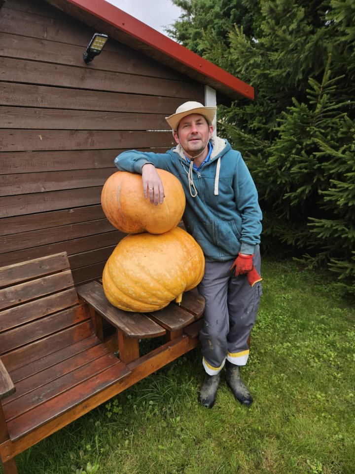 Pasak jo, mažesnysis moliūgas svėrė 19 kilogramų, tačiau didžiausiojo svorio taip ir nepavyko nustatyti.