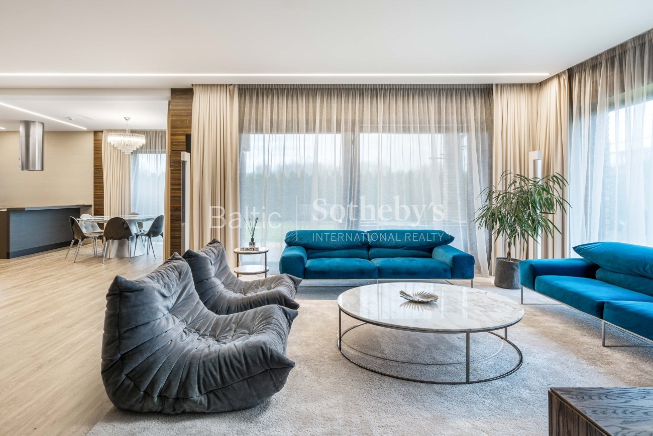 Kaip nurodoma „Baltic Sotheby‘s International Realty“ skelbime, namas yra dviejų aukštų su penkiais miegamaisiais.