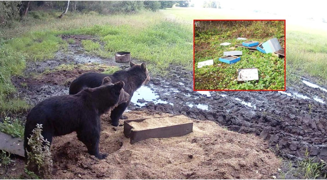 Avilių dalys buvo išmėtytos, išplėšyti ir išgraužti koriai. Manome, kad joks kitas žvėrelis taip negalėjo padaryti, žmogus taip pat – ne. Labai panašu, kad tai – meškos darbas. Labiausiai gaila bičių šeimų.