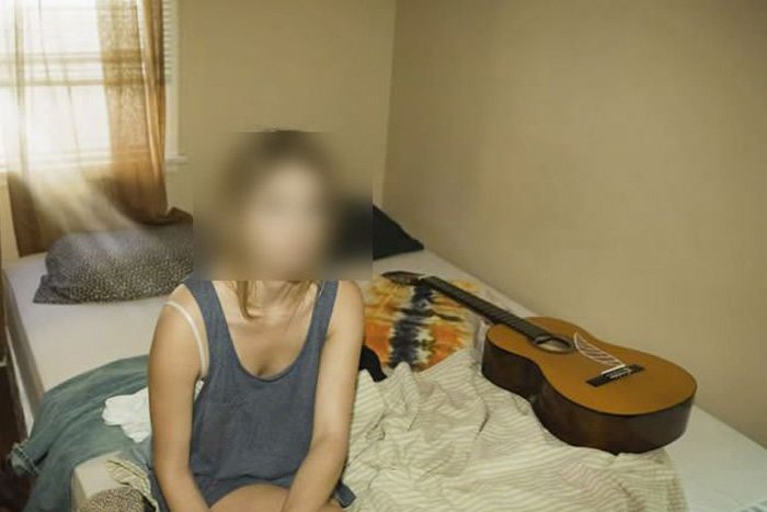 Nekaltas moters veidelis ir visiškai paprasta buitinė nuotrauka slepia itin karčią tiesą. Iš po lovos akivaizdžiai matosi kyšanti vyro ranka.