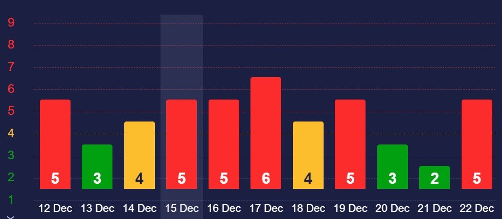 Kol kas prognozės rodo, kad padidėjęs aktyvumas numatomas ir gruodžio 22 dieną, tačiau laikui bėgant prognozės gali kisti, būti tikslinamos.