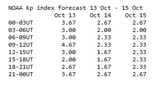 Jungtinių Amerikos Valstijų Nacionalinės vandenynų ir atmosferos tyrimų administracijos (NOAA) artimiausių trijų dienų prognozėje nurodoma, kad šiandien, pirmadienį, aktyvumas daugiausiai pasieks 4,67 balus.