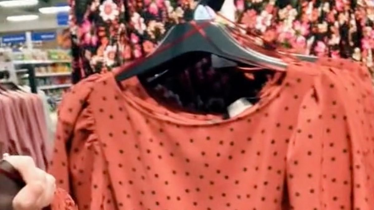 25 metų moteris pasakojo, kad šį raštelį aptiko „Tesco Extra“ parduotuvėje Worthing mieste, Vakarų Sasekse. Jos seseriai labai patiko raudona taškuota mini suknelė ilgomis rankovėmis.