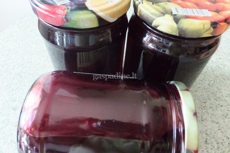 - Uogas ir vyšnių lapus virti 20 min.Tada puodą nukelti,uogas sutrinti ir perkošti.Į perkošta vandenį supilti cukrų,sudėti citrinos rūgštelę,užvirinti.Užvirusį sirupą išpilstyti į stiklainius ir uždaryti.Toks sirupas tinka desertams arba gaivai daryti.