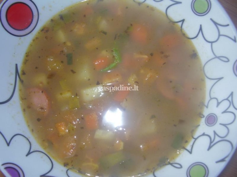 Lęšiai su kubeliais supjaustytomis bulvėmis sudedami į puodą su pasūdytu vandeniu ir verdami. Tuo tarpu keptuvėje kepinamos supjaustytos daržovės (morkos, svogūnai, saliero šaknis, poras). Baigiant kepti daržoves sudedami kubeliais supjaustyti pomidorai ir patroškinama. Baigiant virti bulvėms su lęšiais (nepamiršti įdėti sultinio kubelį), sudedamas į puodą daržovių troškinys ir dar šiek tiek paverdama. Įdedama baziliko ir kitų prieskonių, pagal skonį (aš naudojau prieskonių rinkinį skirtą jautienai). Galima įpjaustyti kelias dešreles. Labai skanu!