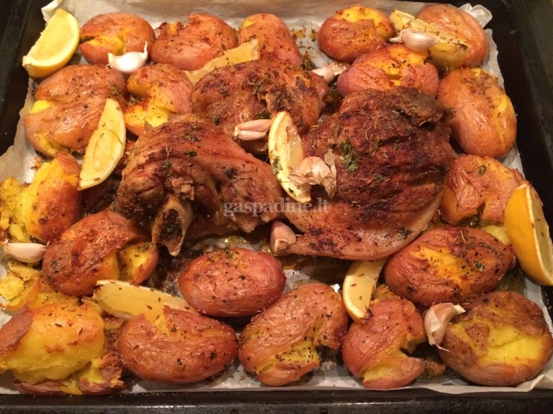 - Viską apšlakstome alyvuogių aliejumi ir kepame iki 180 laipsnių įkaitintoje orkaitėje 45 minutes - 1 valandą.