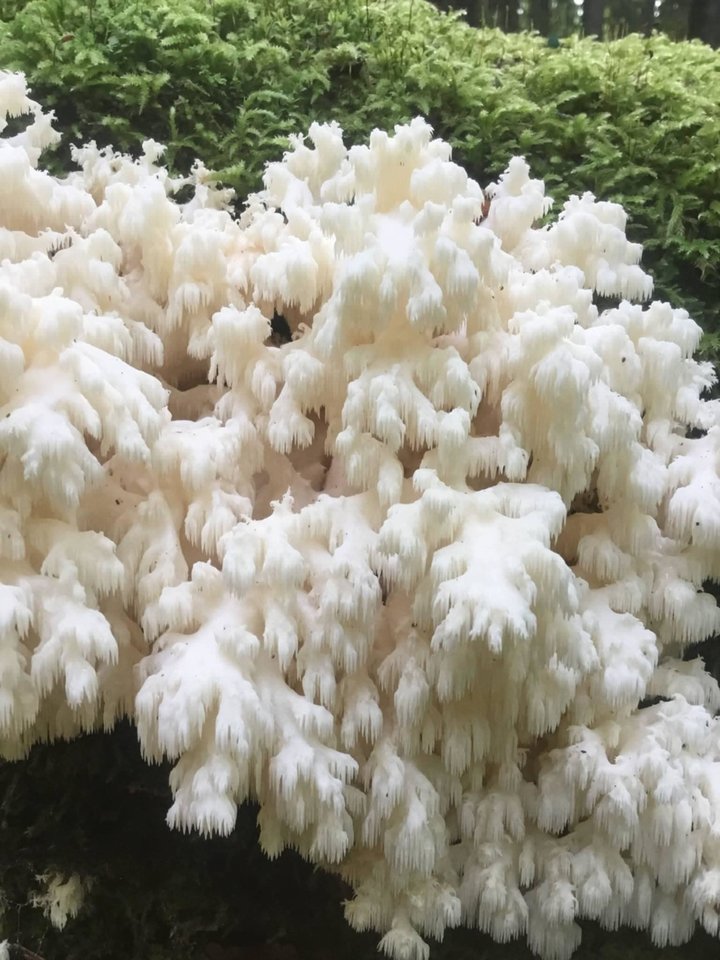 „Tai bent užderėjo šiemet retųjų gražuolių. Šis miškų vulkanas – korališkasis trapiadyglis (lot. Hericium coralloides) – Raudonosios knygos grybas. Ekologė Renata Ulinskienė jį aptiko Biržų regioninio parko miške.