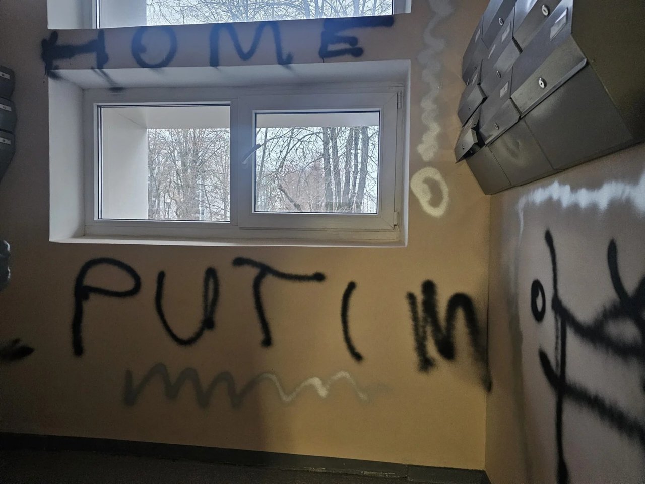 „Laiptinė graži, išdažyta, o šitaip subjaurojo. „Putin“ parašyta ir kitokie žodžiai. Nežinia, kas čia ką nori pasakyti tokiais būdais. Buvo policija, bet, man regis, kai išvažiavo pareigūnai, tų užrašų dar daugiau atsirado“, – pasakojo sutiktas gyventojas.