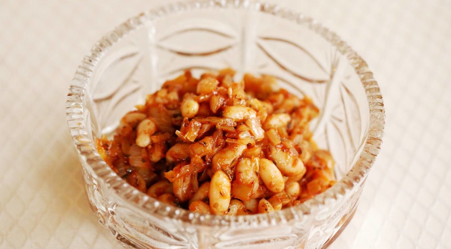• 1 indelio konservuotų baltų pupelių (240 g);