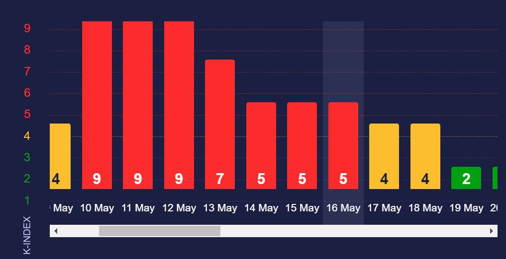 Tačiau jau rytoj, gegužės 17 dieną, bus galima lengviau atsipūsti, nes po šešių 5 ir daugiau balų įvertintų magnetinių audrų dienų jų intensyvumas sumažės iki 4 balų, kurio poveikis sveikatai silpnesnis.