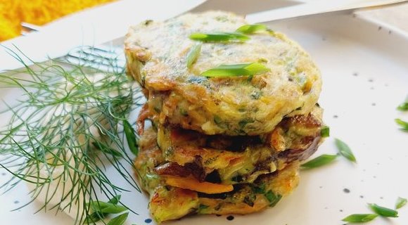 Cukinijas gerai nuspaudžiame, dedame į dubenį. Ten pat mušame kiaušinius, dedame grybus, kepintas daržoves, smulkintus žalumynus. Pagardiname druska ir pipirais. Įmaišome miltus.