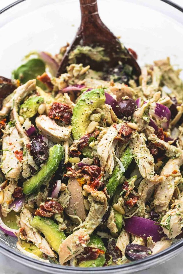 Gaivios rūkytos vištienos salotos su avokadu ir feta
