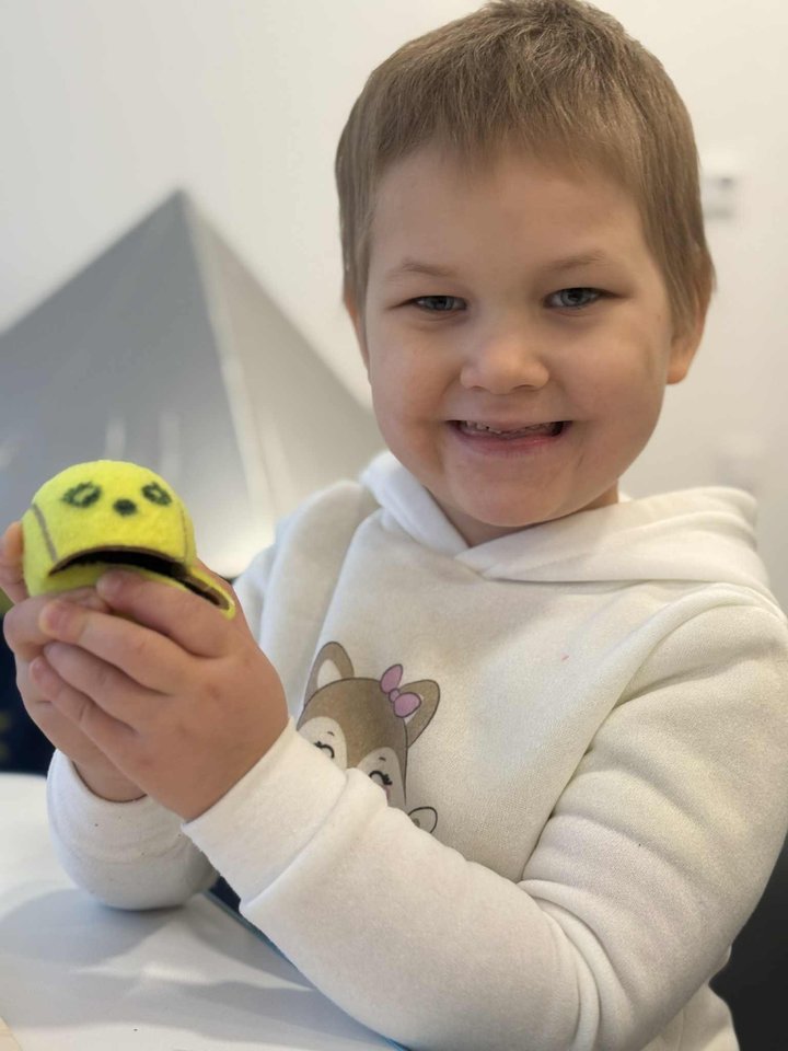 Iš pradžių bandydavome atlikti bent po vieną pratimą. Reikėjo kaip reikiant pasukti galvą, kaip sudominti vaiką, bet visada galima rasti būdų, kaip tai padaryti. Kaskart mergaitę reikėjo kuo nors nustebinti, paskatinti, pasiūlyti siurprizų. Į užsiėmimus ji ėjo kiekvieną dieną tris savaites.