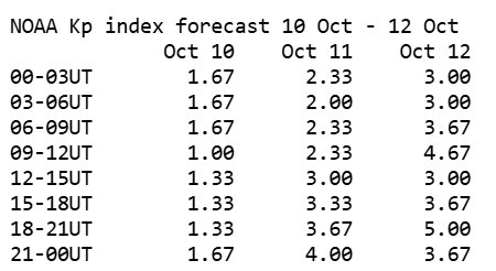 Jungtinių Amerikos Valstijų Nacionalinės vandenynų ir atmosferos tyrimų administracijos (NOAA) artimiausių trijų dienų prognozėje nurodoma, kad šiandien, skirtingai nei ankstesnio šaltinio duomenimis, magnetinės audros nebus. Geomagnetinio lauko aktyvumas maksimaliai pakils iki vos 1,67 balo.