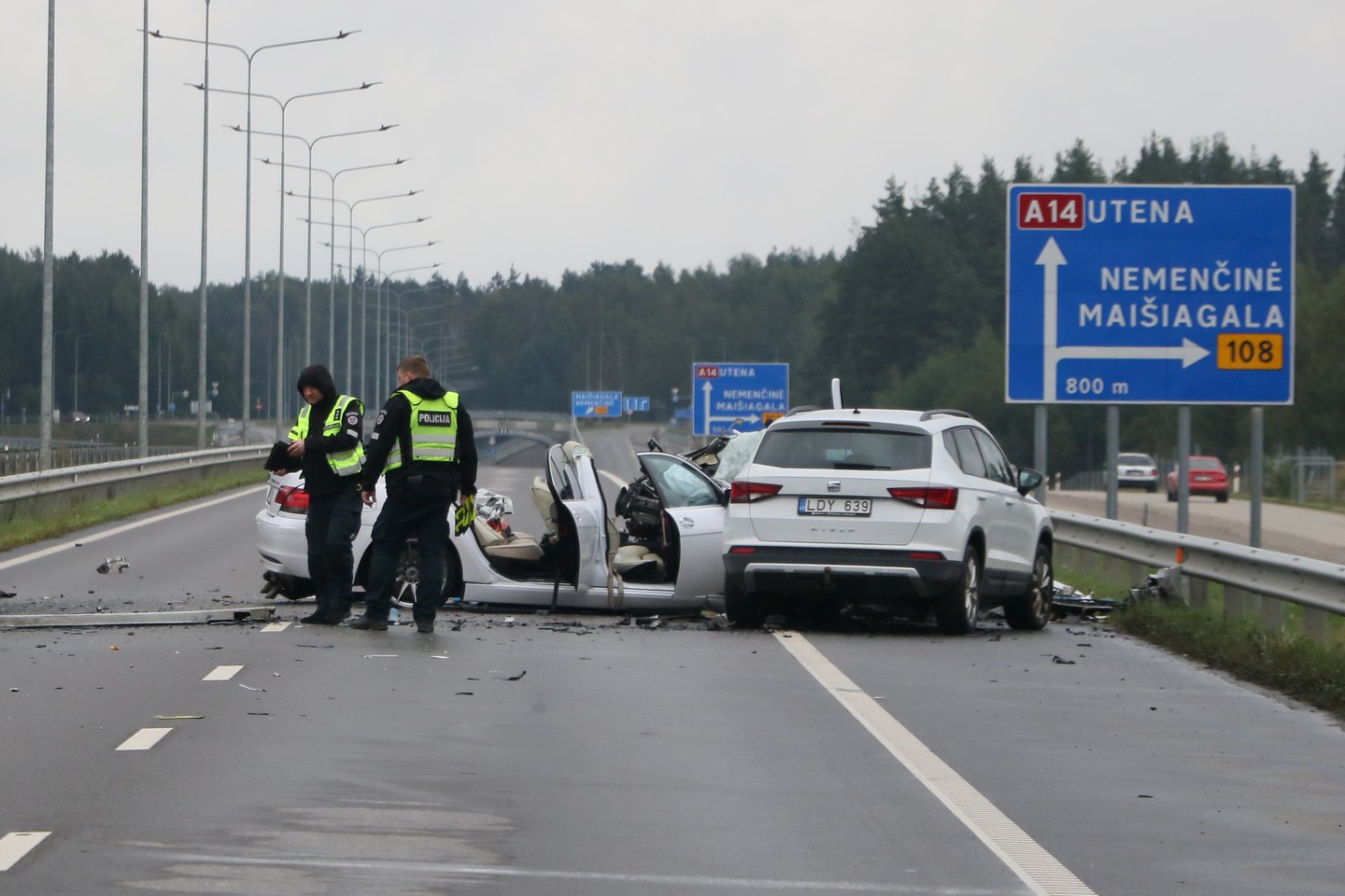 Anot Policijos departamento, automobilis „Ford Kuga“, vairuojamas vyro (gim. 1932 m.), važiuodamas priešpriešiniu eismu, antra eismo juosta, susidūrė su priešpriešiais važiavusiu automobiliu „BMW 730LD SE“, kurį vairavo vyras (gim. 1993 m.).